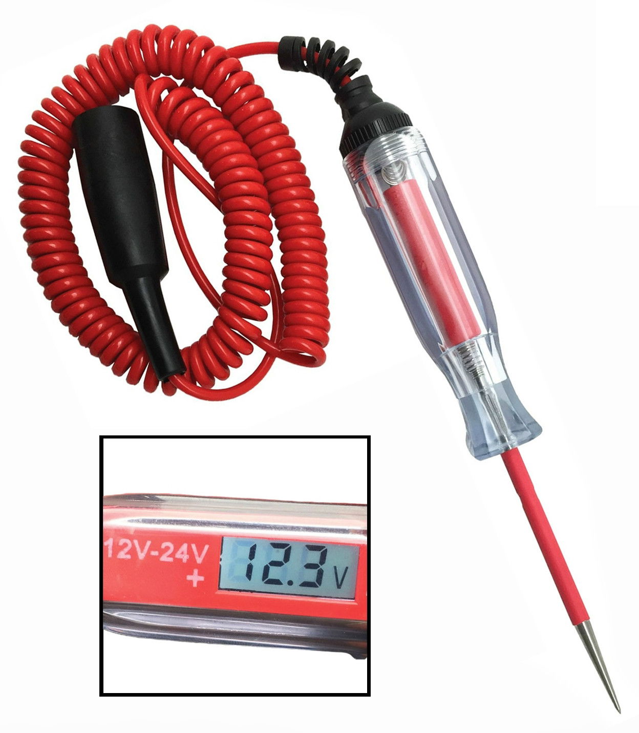 - Elektromos áramkörökhöz (12 / 24 V) történő használathoz az éles rozsdamentes acél tű lehetővé teszi az áramkörök könnyű hozzáférését.