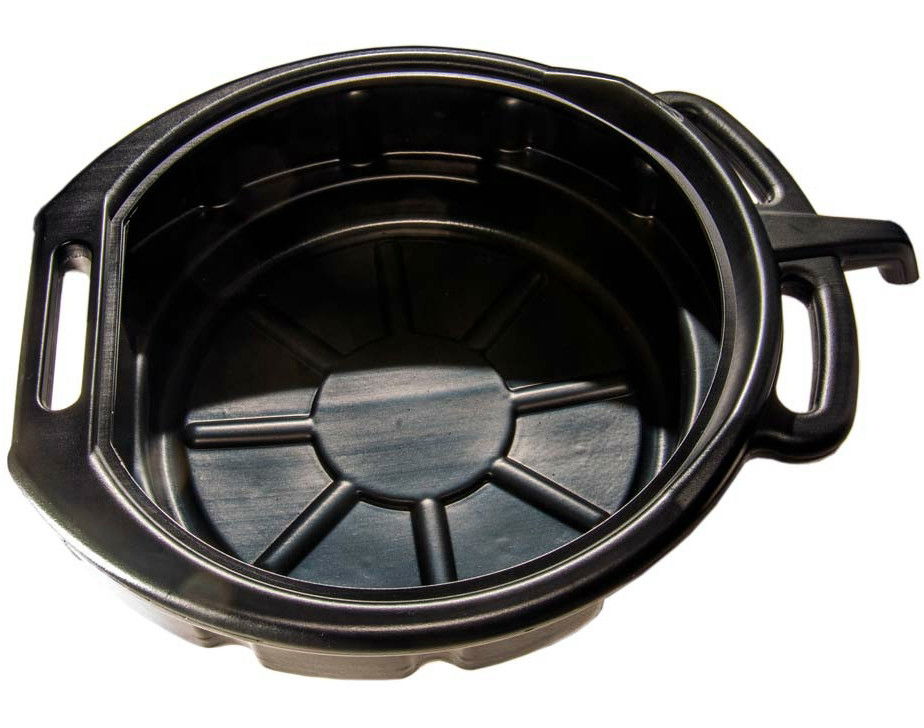 - Olaj / folyadék leeresztő tál nagy fogantyúval és kiöntő nyílással.